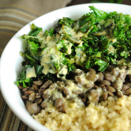 6. Cheesy Vegan Alfredo with Peas & Kale by Luminous Vegans
