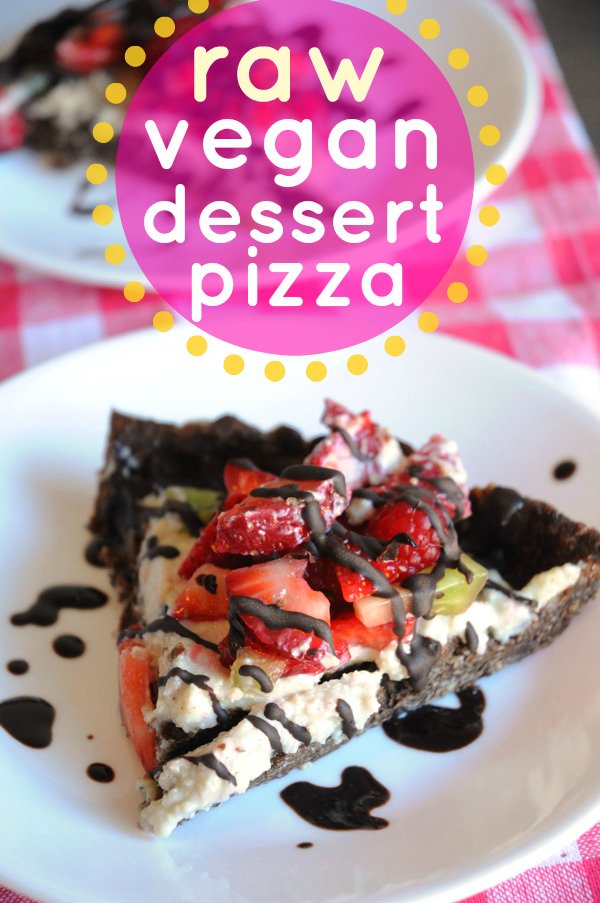 I wasn’t really sure what would work best for the pizza “sauce”, so I tried cashew cream, but thickened it slightly, by adding less water than I normally do. It was perfect. Next time I may add some cocoa powder for an even bigger chocolate kick.